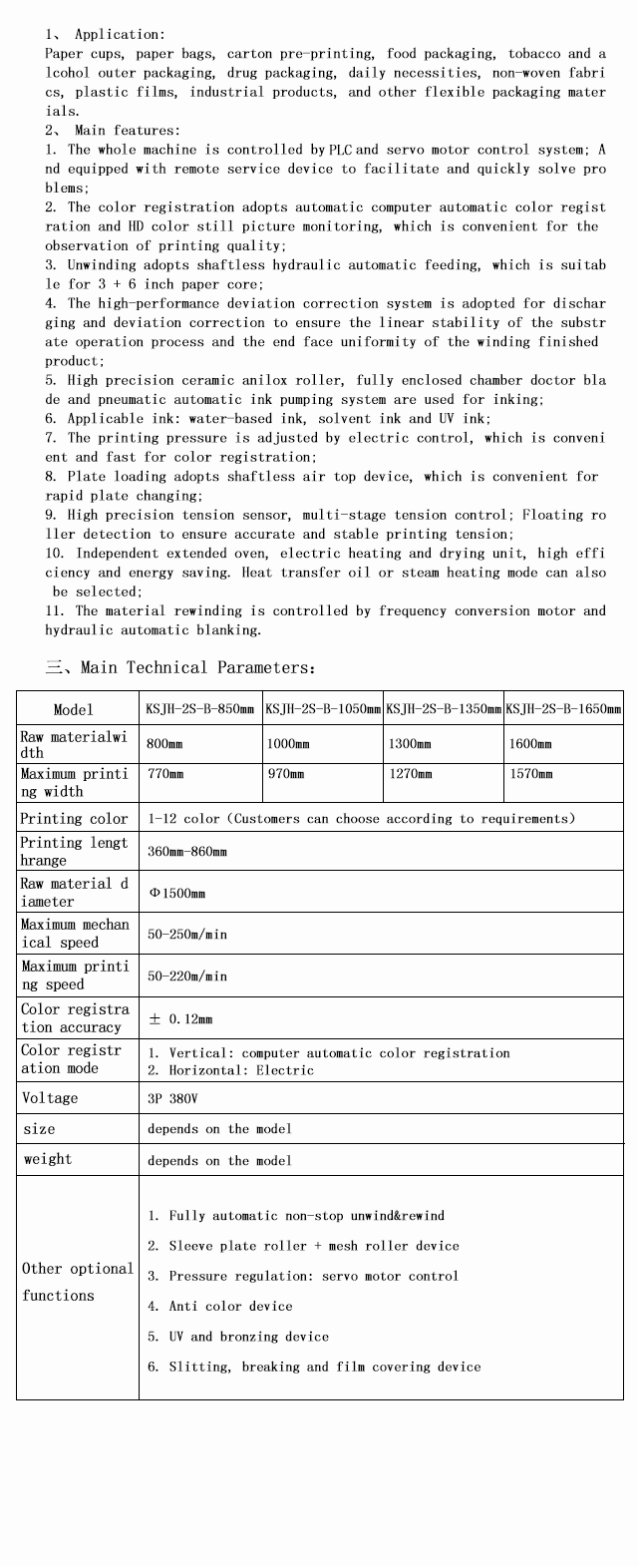 KSJH-2S-B unit type flexo printing machine with automatic color registration